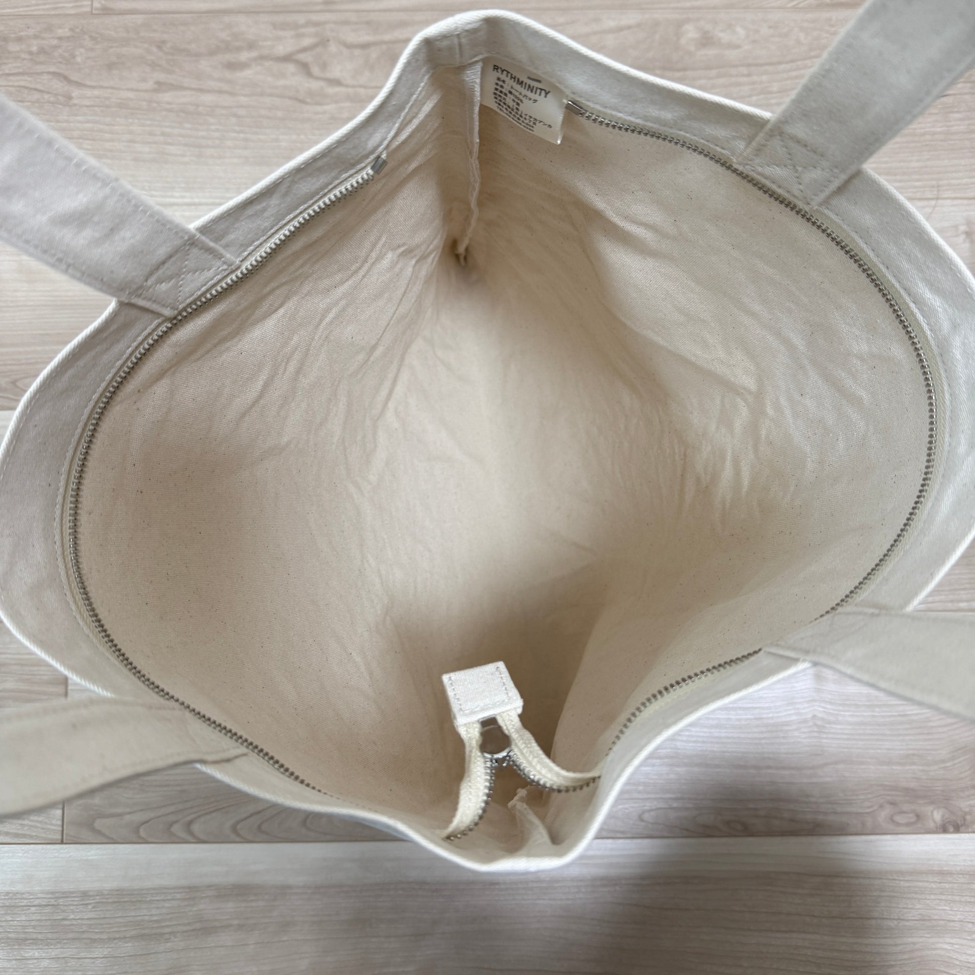 RYTHMINITYのキャンバストートは、洗練されたミニマルデザインで、どんなシーンにも自然と馴染む万能アイテムです。